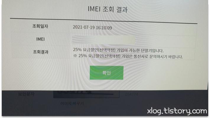 분실/도난 정보가 없고, 25% 요금할인 가입이 가능한 단말기라고 나오면 정상입니다.