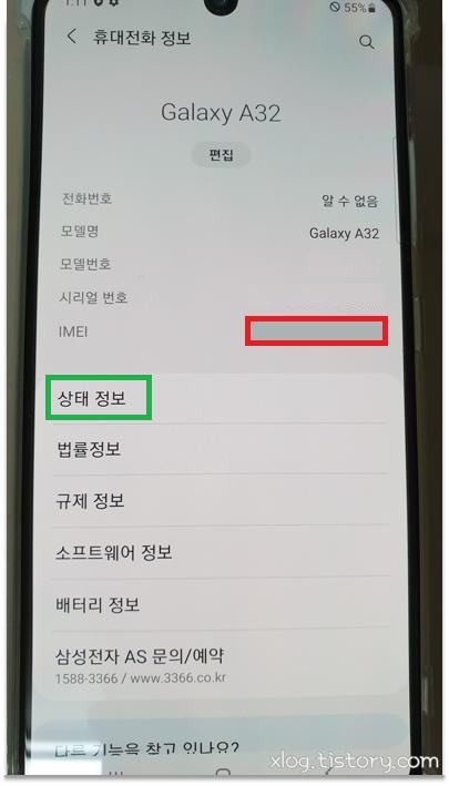 IMEI 아래에 상태정보를 누르면 최초 통화일을 확인할 수 있는데