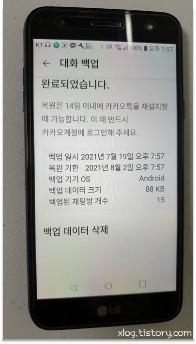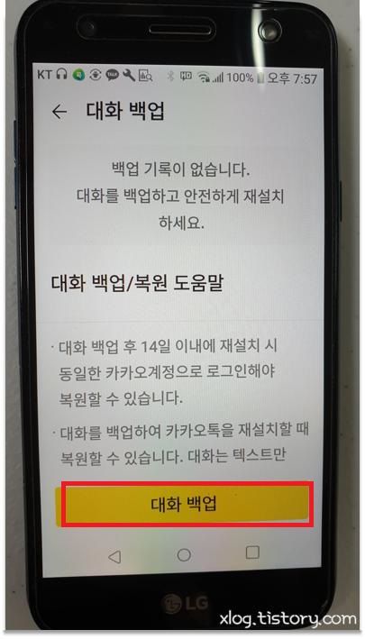 대화 백업은 말 그대로 사진 등 미디어 자료는 백업하지 않고 대화 내용만 백업됩니다.