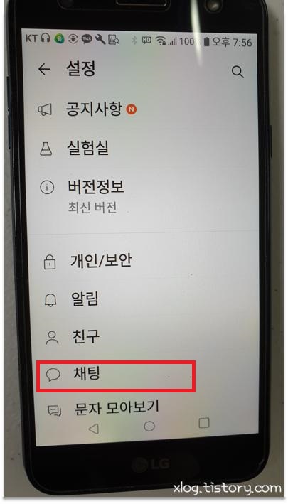 설정 창에서 채팅을 선택합니다.