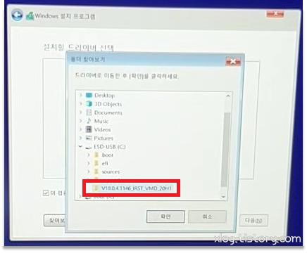 USB에 넣어둔 저장장치 인식용 드라이버를 선택하고 [확인]