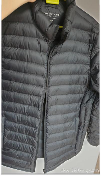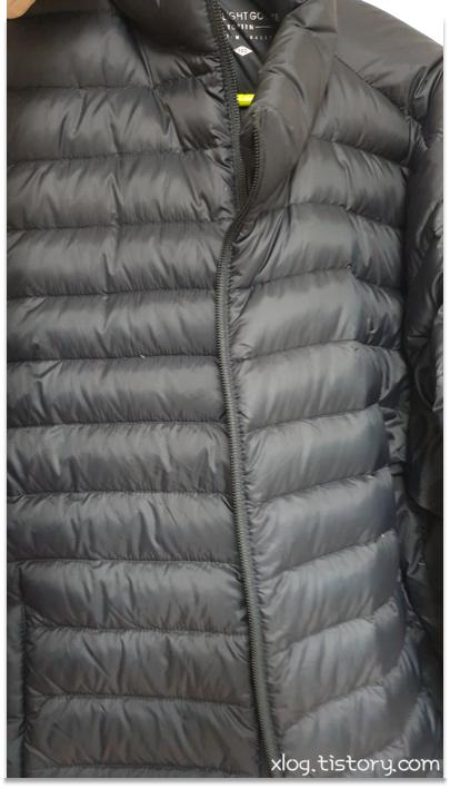 검은색 경량 패딩을 다림질 해봤습니다.