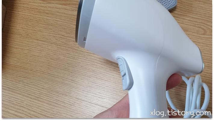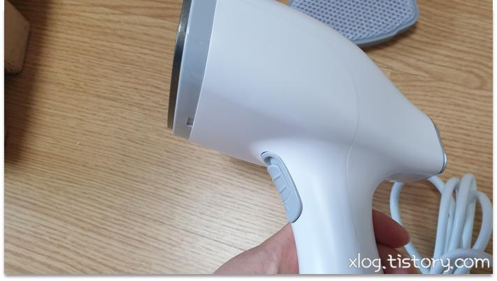 버튼을 권총 쏘듯이 누르면 스팀이 분사됩니다.
