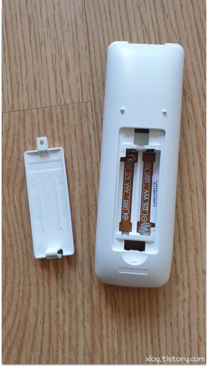 건전지는 없는 상태였고, AAA건전지 2개 넣고 동작시켜보니 정상적으로 에어컨이 동작했습니다.