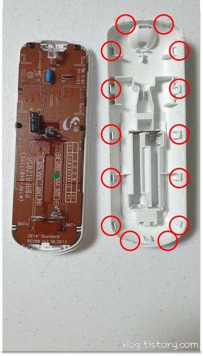 적외선 센서부분이 하판이 아닌 상판에 붙어 있으므로 분해할 때는 적외선 센서가 없는 아래쪽부터 분해해 나가는 것이 좋습니다.