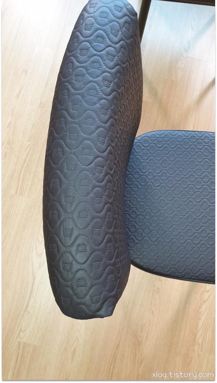 등받이 부분은 엉덩이를 쑤욱 밀어넣고 허리를 붙이면 강제로 바른자세가 되지만,