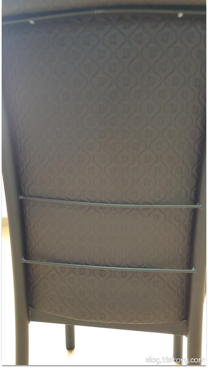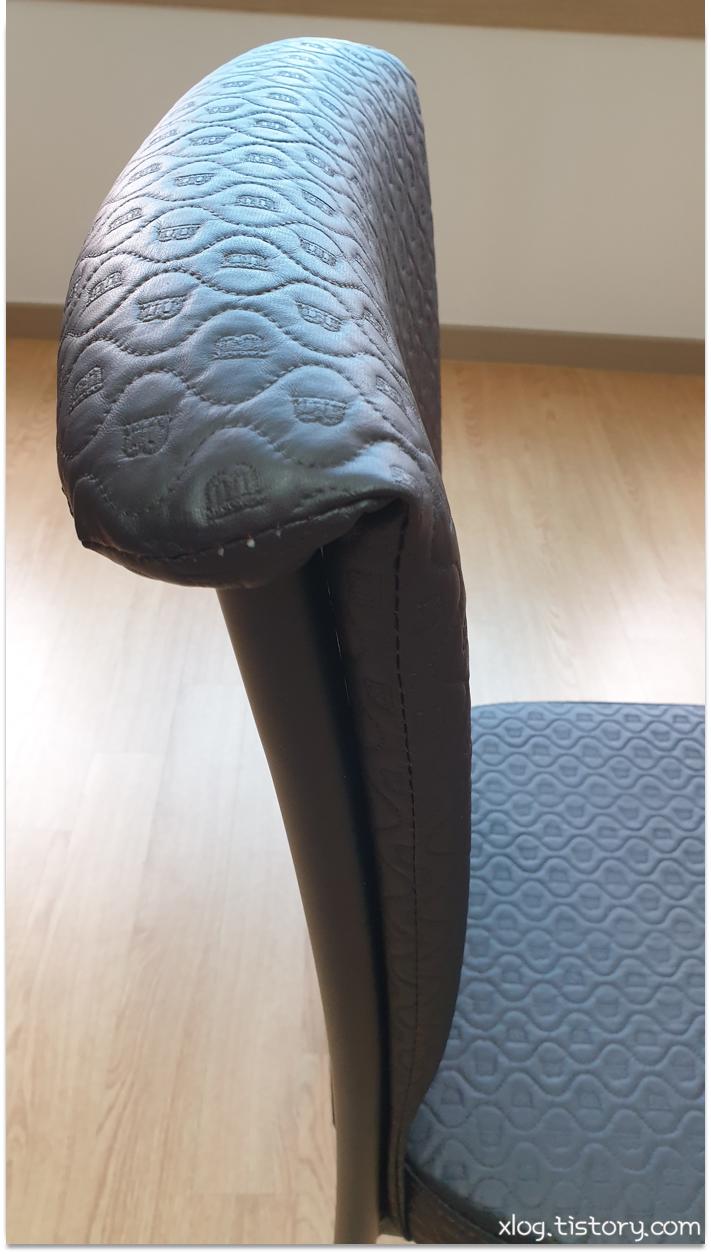 의자 방석과 등받이 부분은 스펀지 위에 인조가죽을 씌워놓았는데 인조가죽의 박음질 상태는 나쁘지 않았습니다.