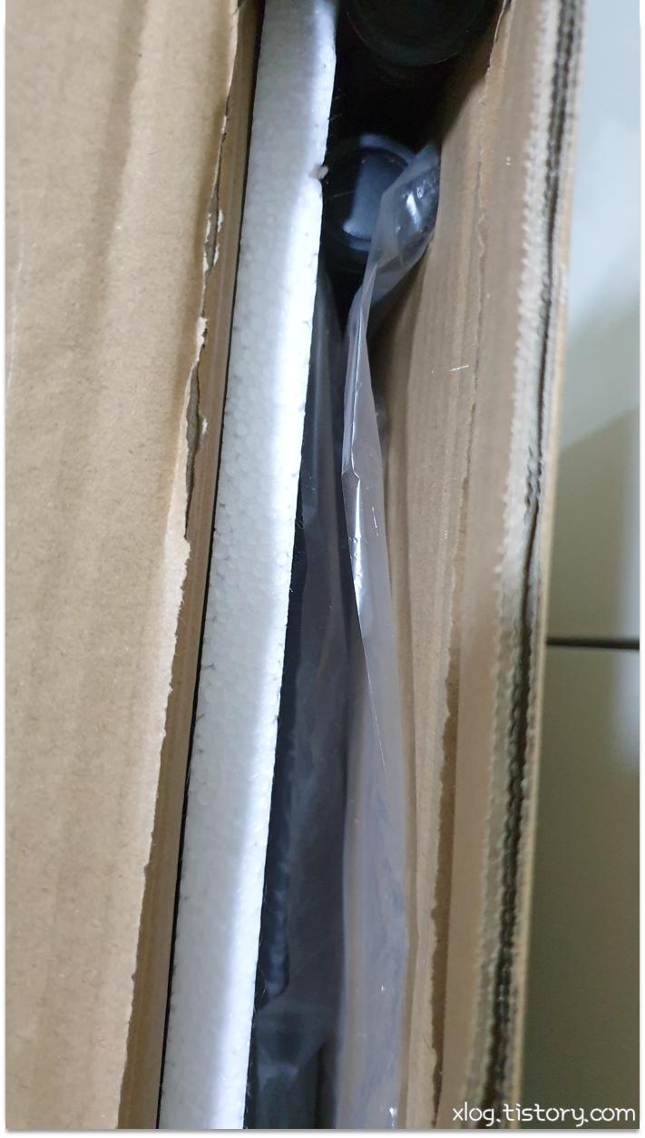얇고 넓은 상자에 스티로폼으로 완충되어 포장되어있네요.