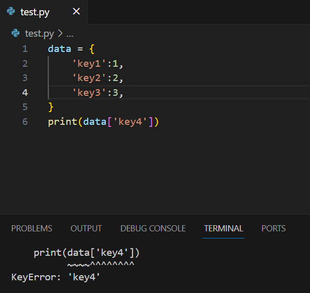 KeyError: 'key4'