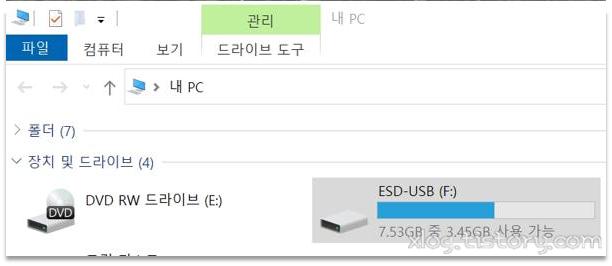 윈도우 10 설치용 USB를 새로 만들었습니다.