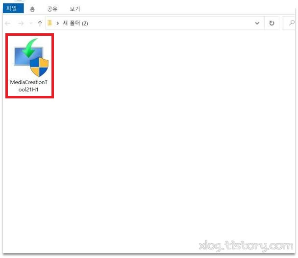그냥 실행하면 설치 중에 에러가 뜨는 경우도 있으므로 MediaCreationTool 파일을 마우스 오른쪽->관리자 권한으로 실행합니다.