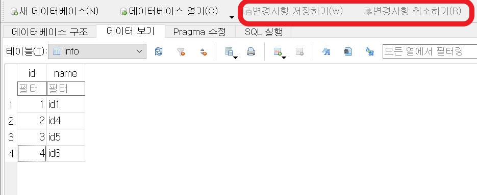 위 상황에서는 DB Browser에서 값을 수정했다면 변경사항 저장하기 또는 취소하기를 눌러주거나 아예 데이터베이스 닫기를 하면 해결됩니다.