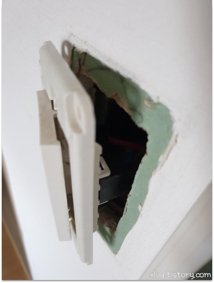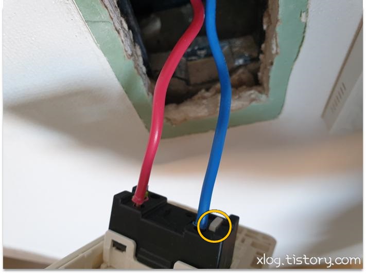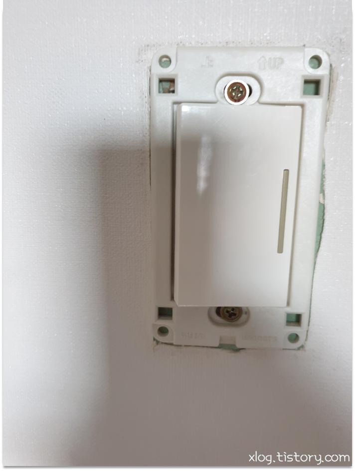 여기서부터는 벽면 내부 전선을 만져야하므로 차단기에서 방 전등 차단기를 내리고 작업해야합니다.