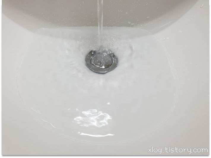세면대에서 물을 틀면 바로 바닥으로 떨어지는 상황이 되어버렸습니다.