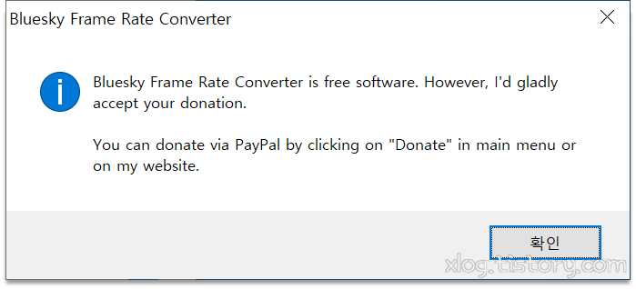 처음 시작하면 무료 소프트웨어이며 도네해주면 고맙겠다는 안내 창이 뜨는데 확인 누르면 넘어갑니다.