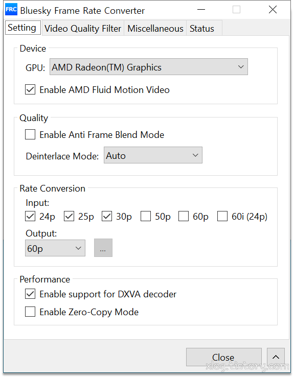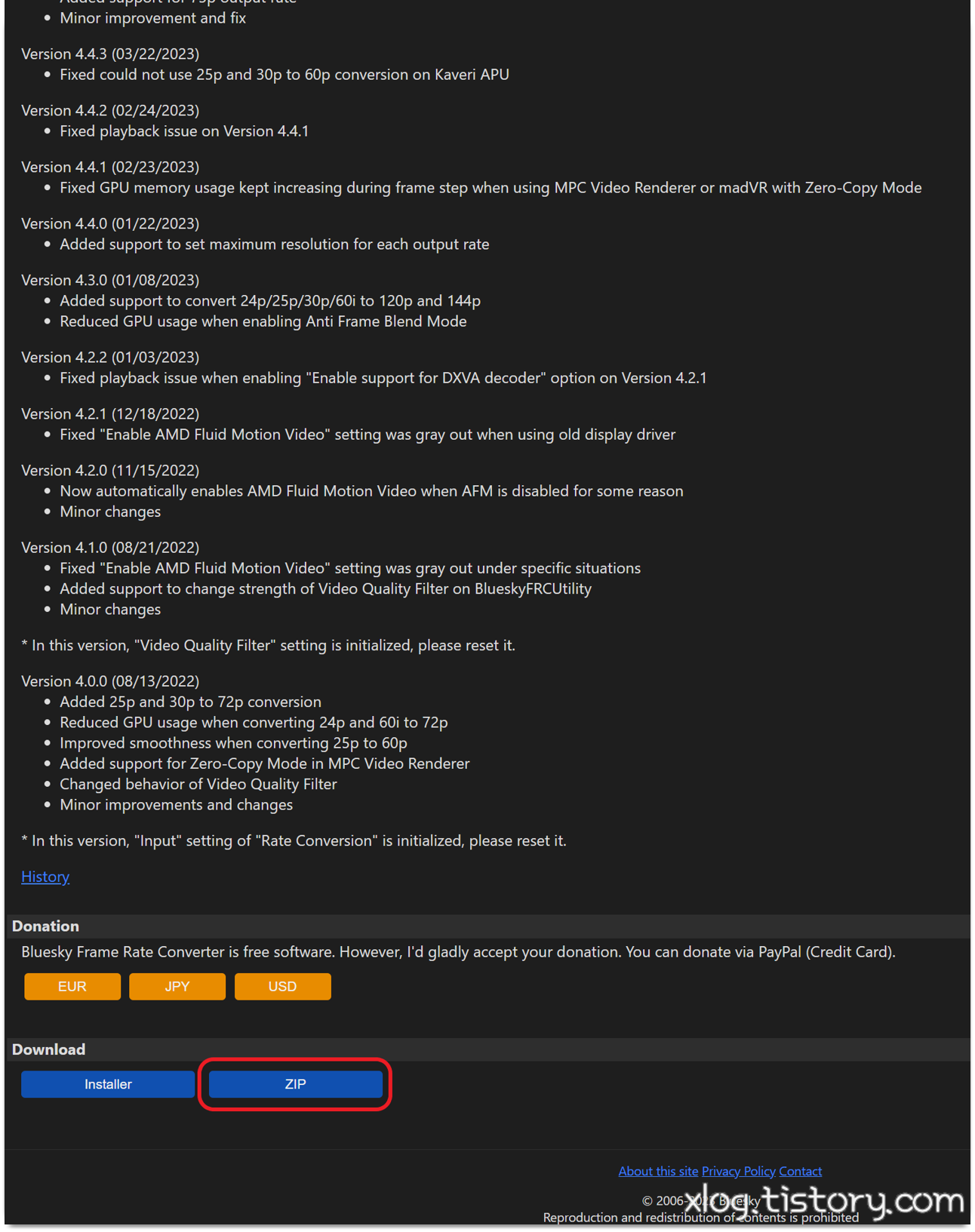 팟플레이어에서 플루이드 모션을 사용하려면 아래 링크에서 Bluesky Frame Rate Converter라는 필터를 다운받아야 합니다.