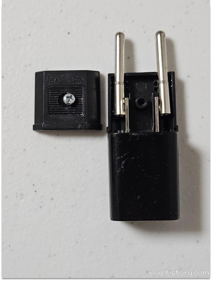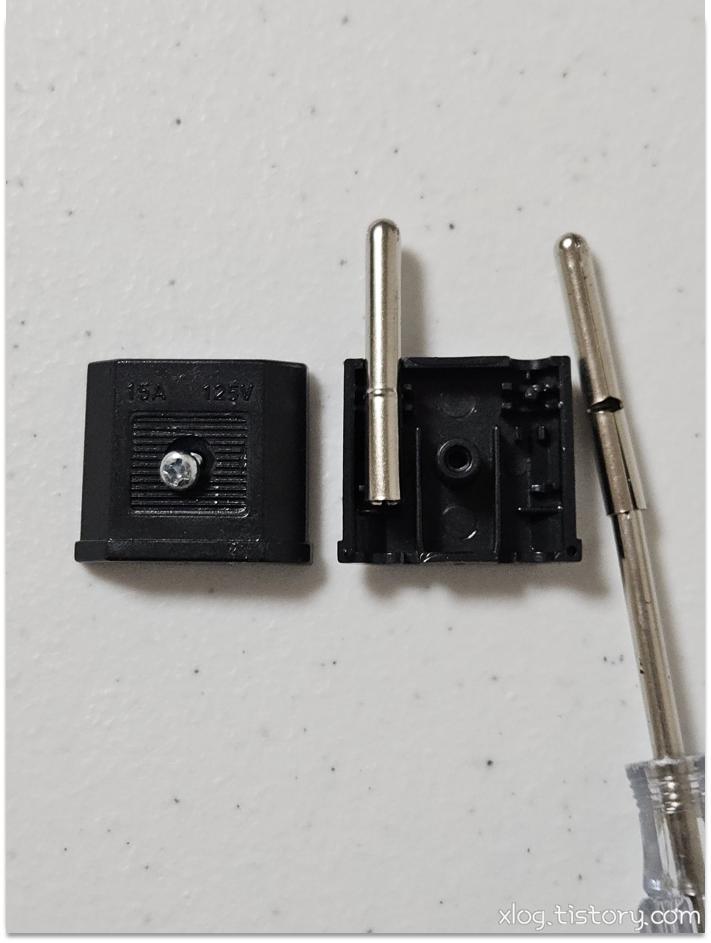 돼지코 중앙 나사만 풀면 내부 구조를 볼 수 있는데, 매우 심플한 구조로 되어있다보니 220V용 원형 단자와 110V의 일자 플러그 단자가 제대로 접촉이 안되는 경우가 종종 있기 때문이죠.