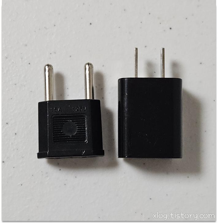 왼쪽이 110V -> 220V 변환 어댑터고 오른쪽은 예시를 위해 가져온 TiVo STREAM 4K에 동봉된 110V 전원 플러그용 usb 충전기입니다.