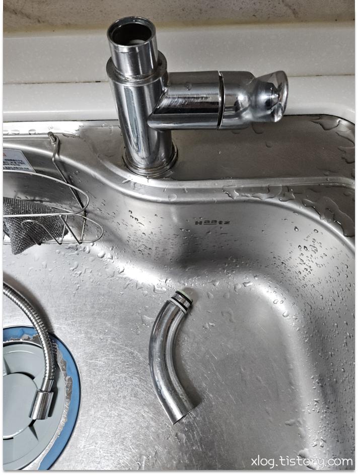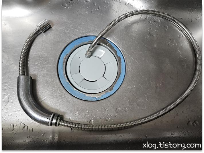사진으로는 쉽게 뽑혀 나오는것처럼 보이지만 실제로는 수전에 메인호스, 냉수, 온수, 스프레이 호스가 얽혀있어서 뽑아낼때 걸리는 부분이 없도록 다른 호스들 위치를 움직이면서 뽑아내야 합니다.