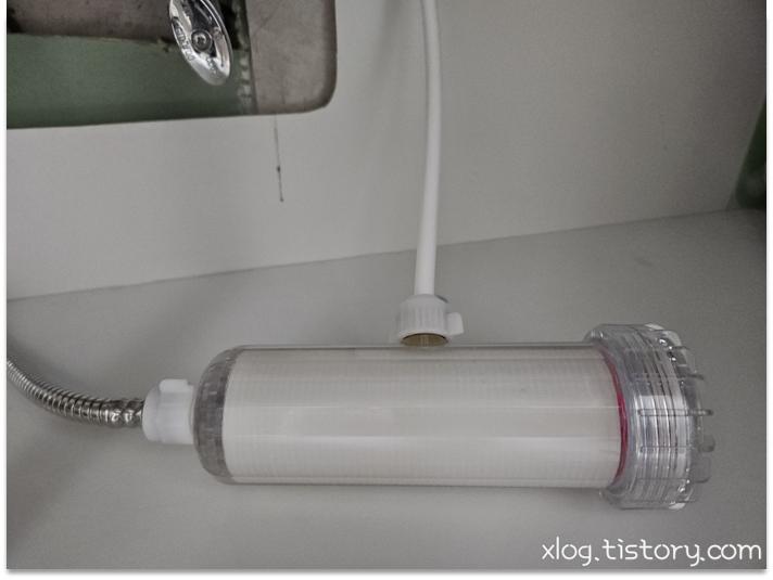 수돗물 필터를 사용할 경우 스프레이 호스 -> 수돗물 필터 -> 메인호스로 연결합니다.
