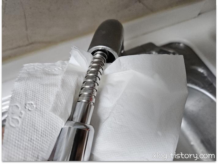 물이 새는지 휴지로 호스를 감싸서 확인 한 다음